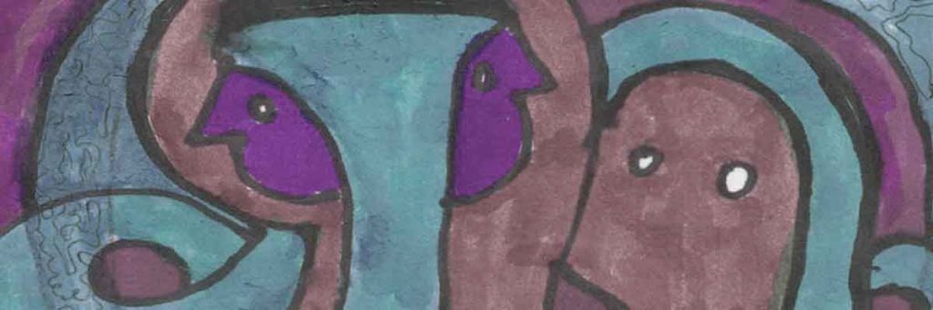 Vor der Person steht ein Wesen.